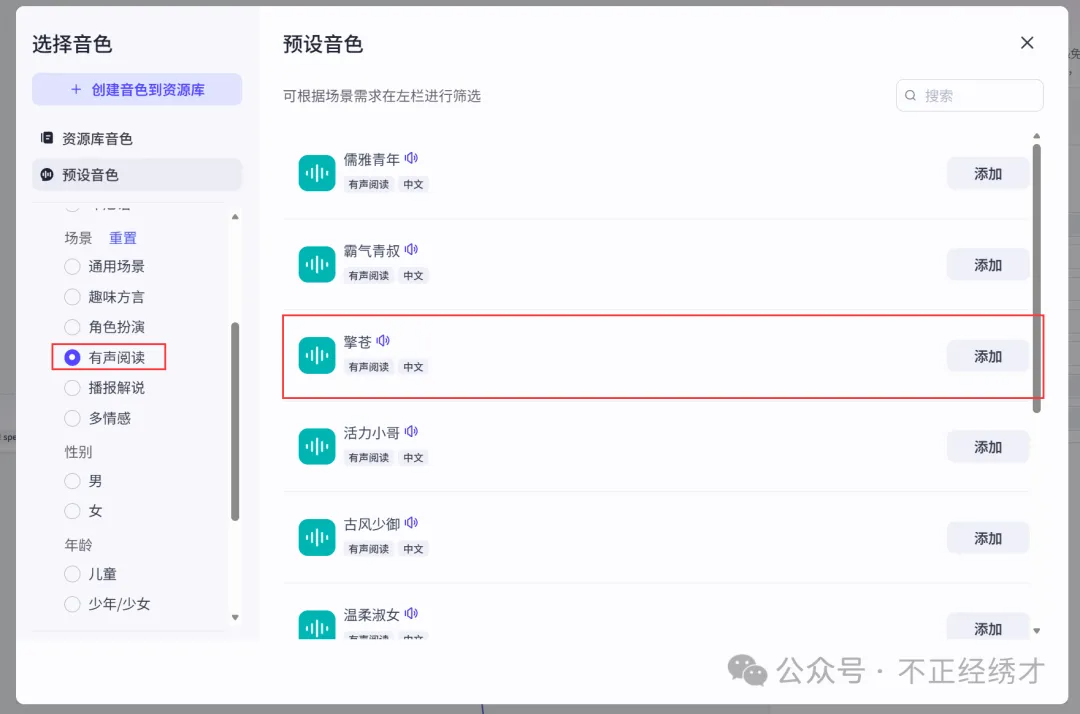 可以点击智能体中的选择音色按钮,挑选自己喜欢的声音。