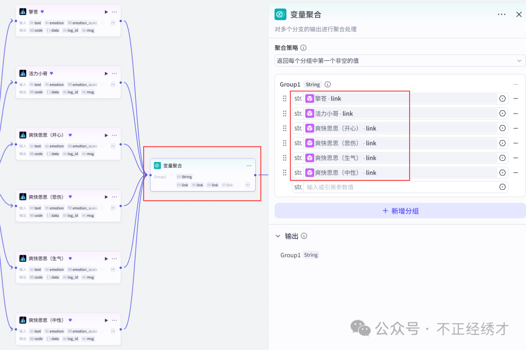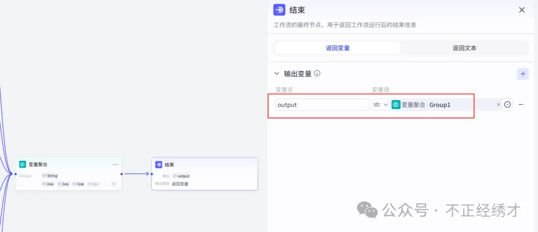 (5)在语音合成节点后添加变量聚合节点->设置参数;