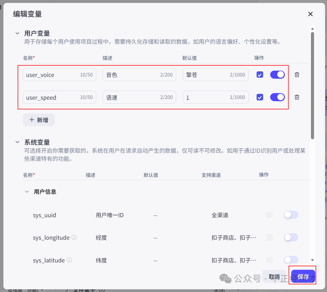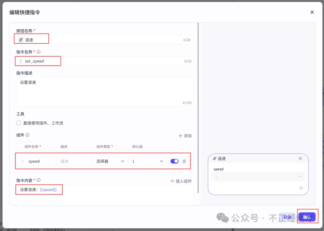 (2)给智能体添加之前发布的工作流text_to_speech;