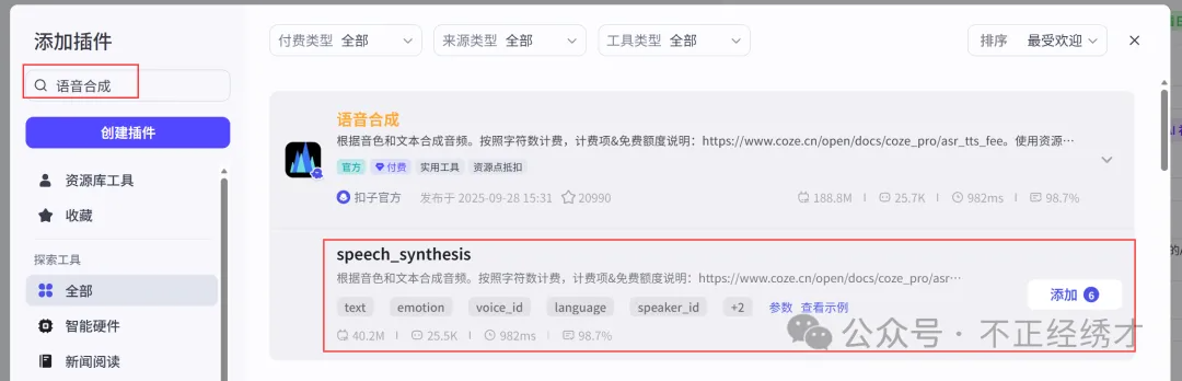 上周我在复刻一个热门短视频时,想要深沉有力带感情的配音,尝试在很多免费配音工具里面找,都不太满意,突然想到扣子的官方插件音色那么多,怎么不试一下呢?