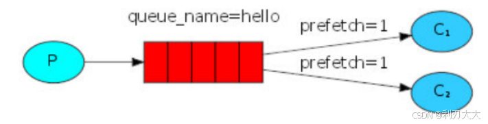 我们可以使用设置 prefetch=1 的方式,告诉 RabbitMQ 一次只给一个消费者一条消息,也就是说,在处理并确认前一条消息之前,不要向该消费者发送新消息。此时,它会将它分派给下一个不忙的消费者。