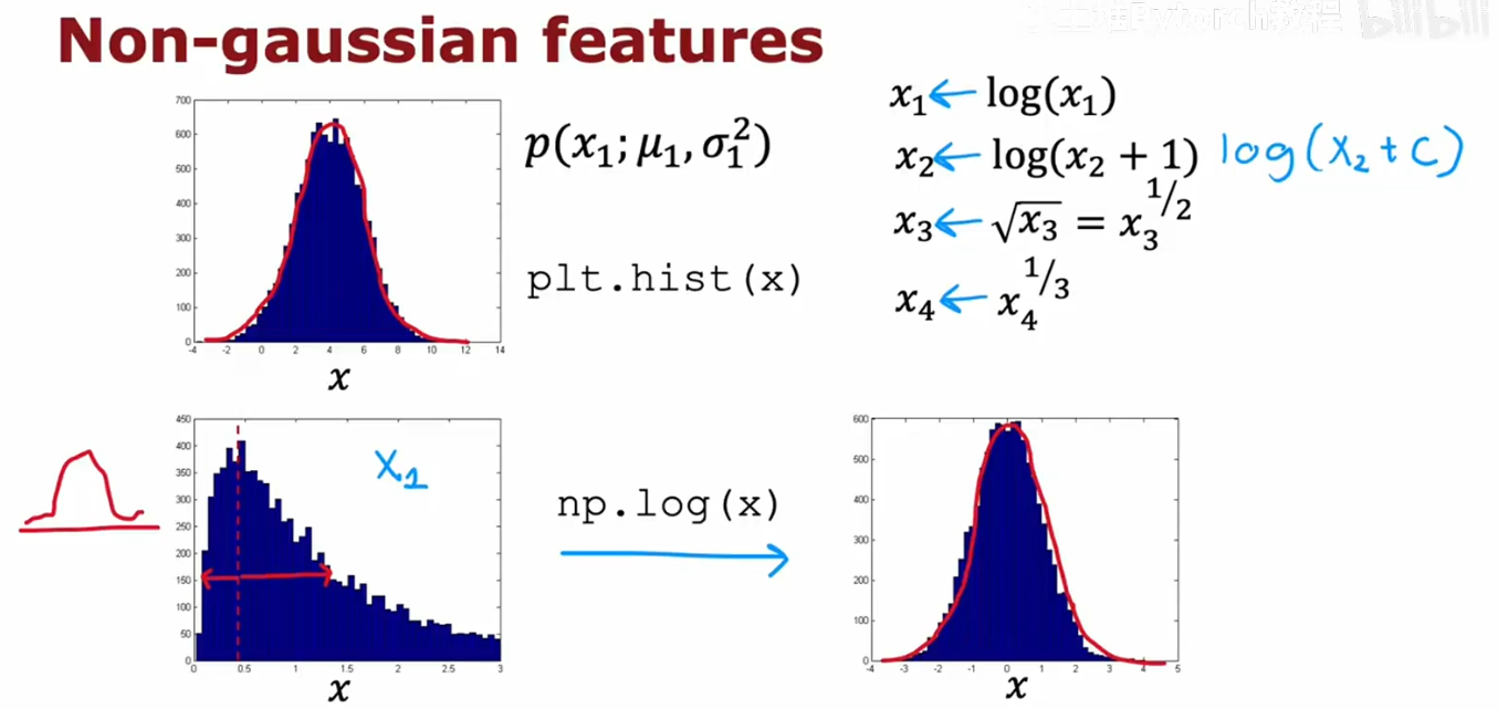 如果原始特征不是高斯分布情况,我们需要对其进行数据变化,让其符合高斯分分布,变化的方式方法如上图所示