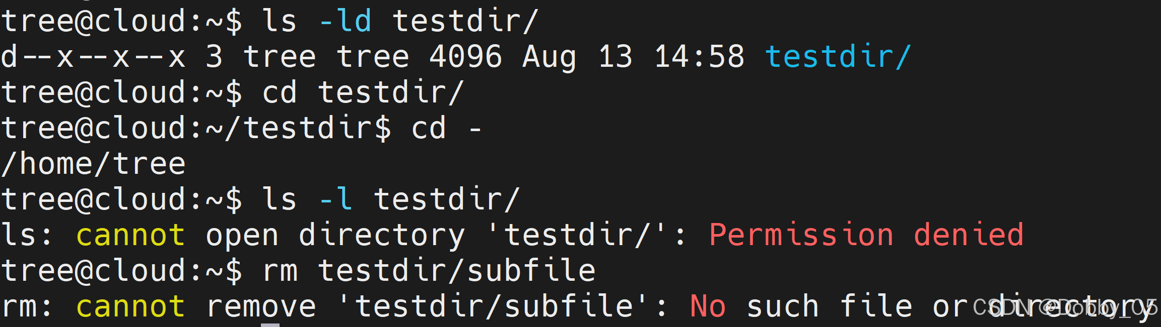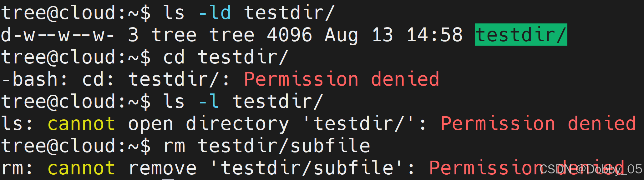 只有写权限时,无法进入,无法查看目录内容,也不能创建、删除、移动内部内容(需要搭配x权限):