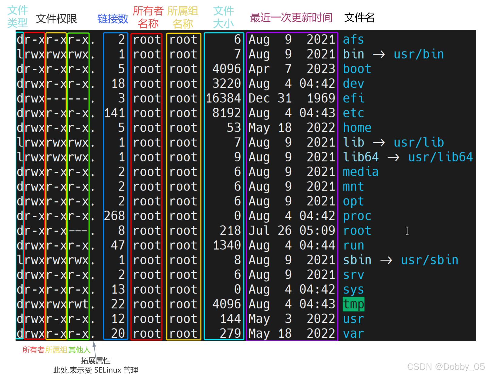 其中第一列首字符表示文件类型,主要有以下几种: