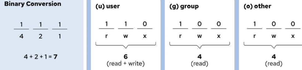 数值法: - 每个数字代表一个访问级别的权限:user、group、other