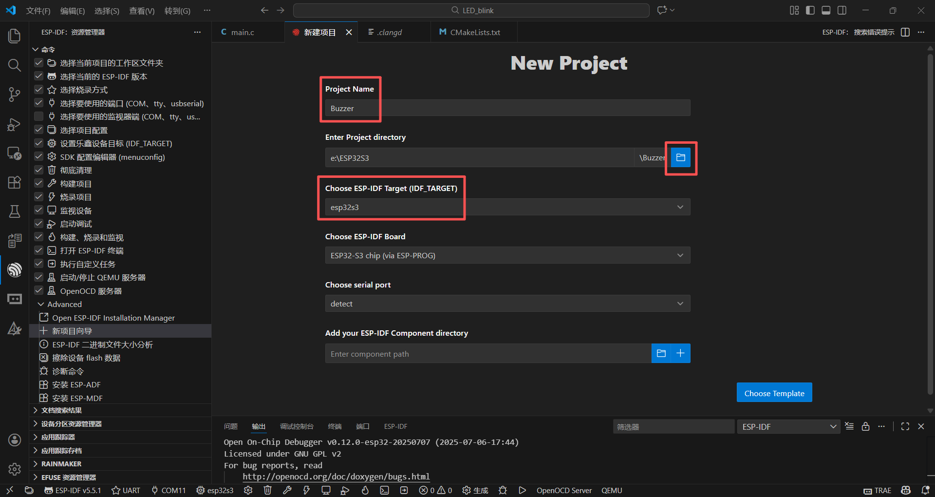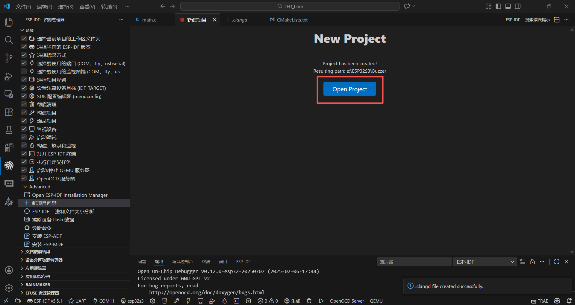 按照上节讲述的方法,建立一个名为"Buzzer"的工程: