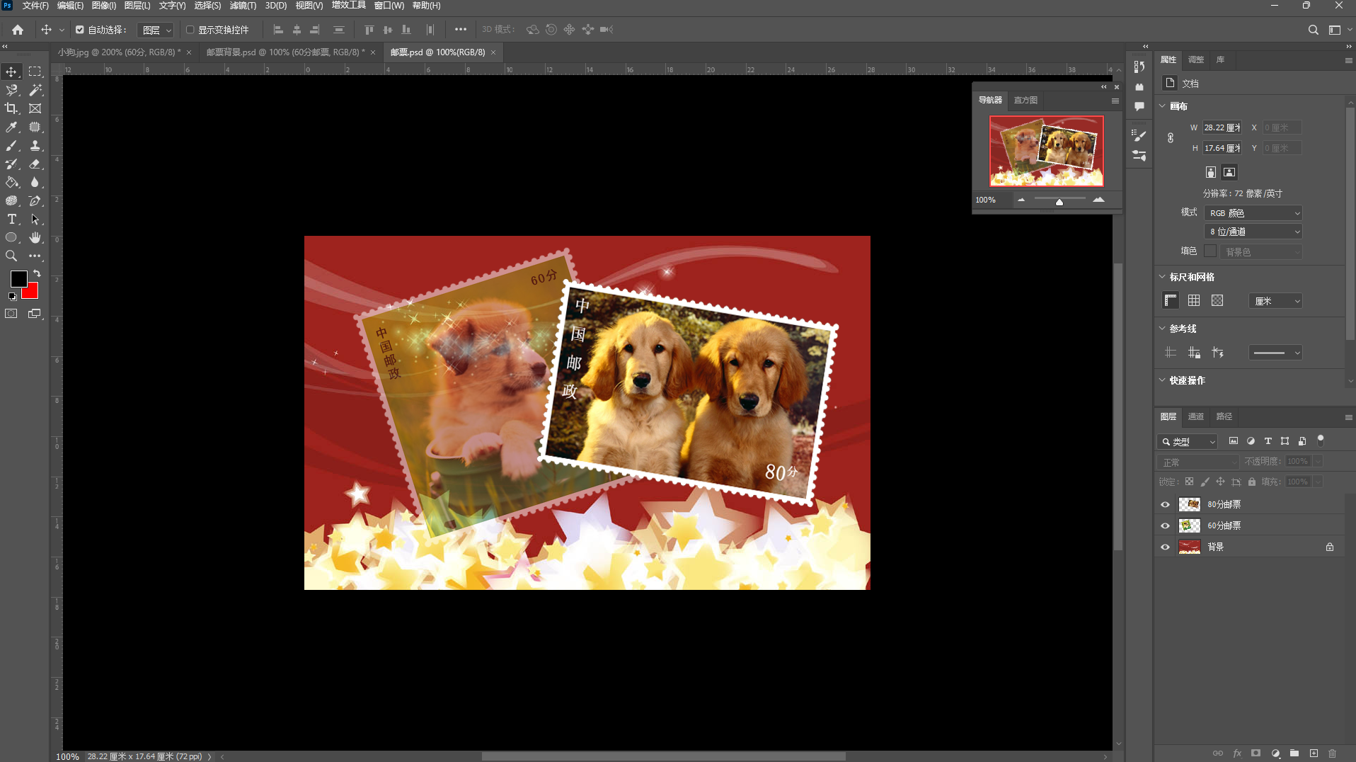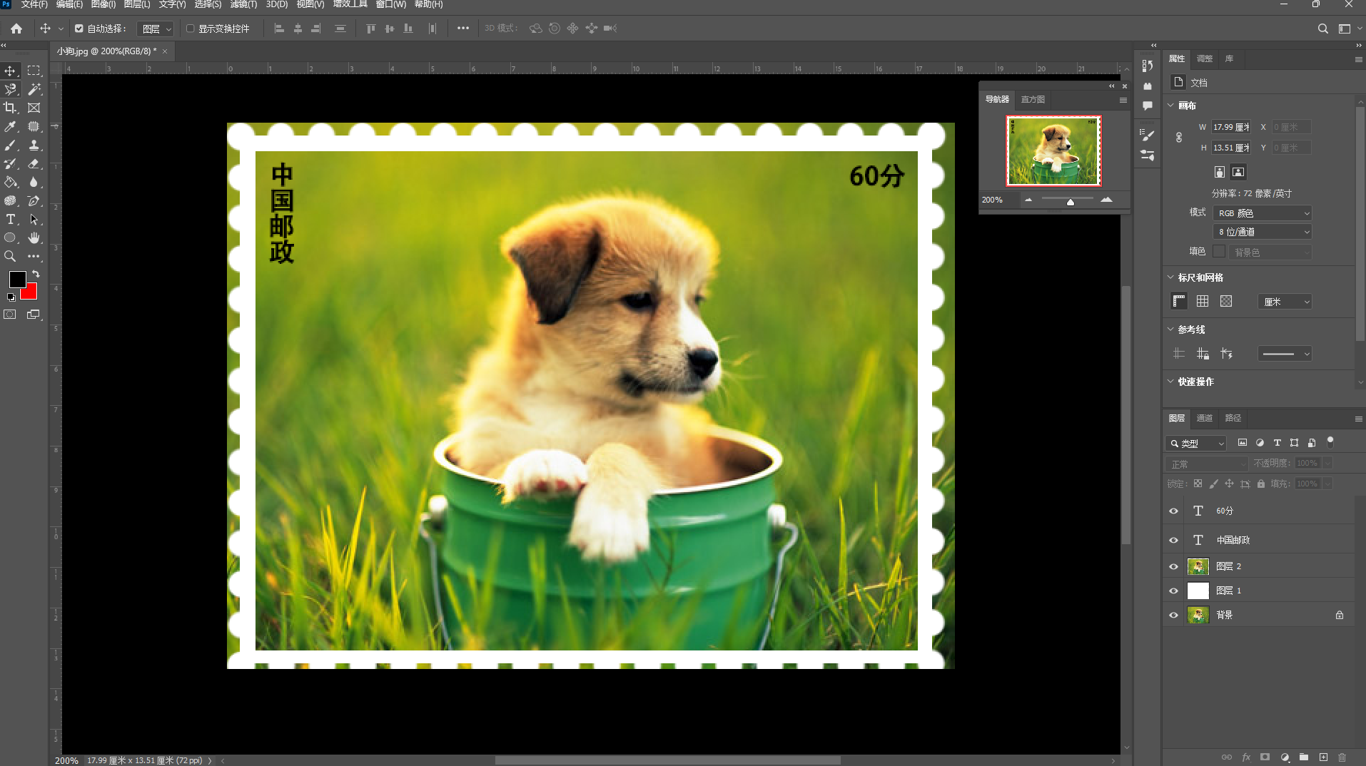 ⑨按【ctrl+A】全选"60分"图层中的图像,然后按【ctrl+C】组合键复制图层,打开"邮票背景"文件,【ctrl+V】粘贴图层。