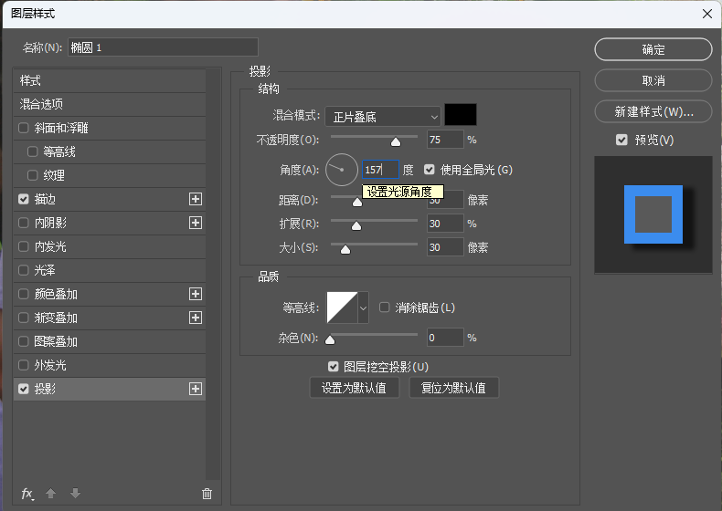 ③设置"投影"样式,参数如下。