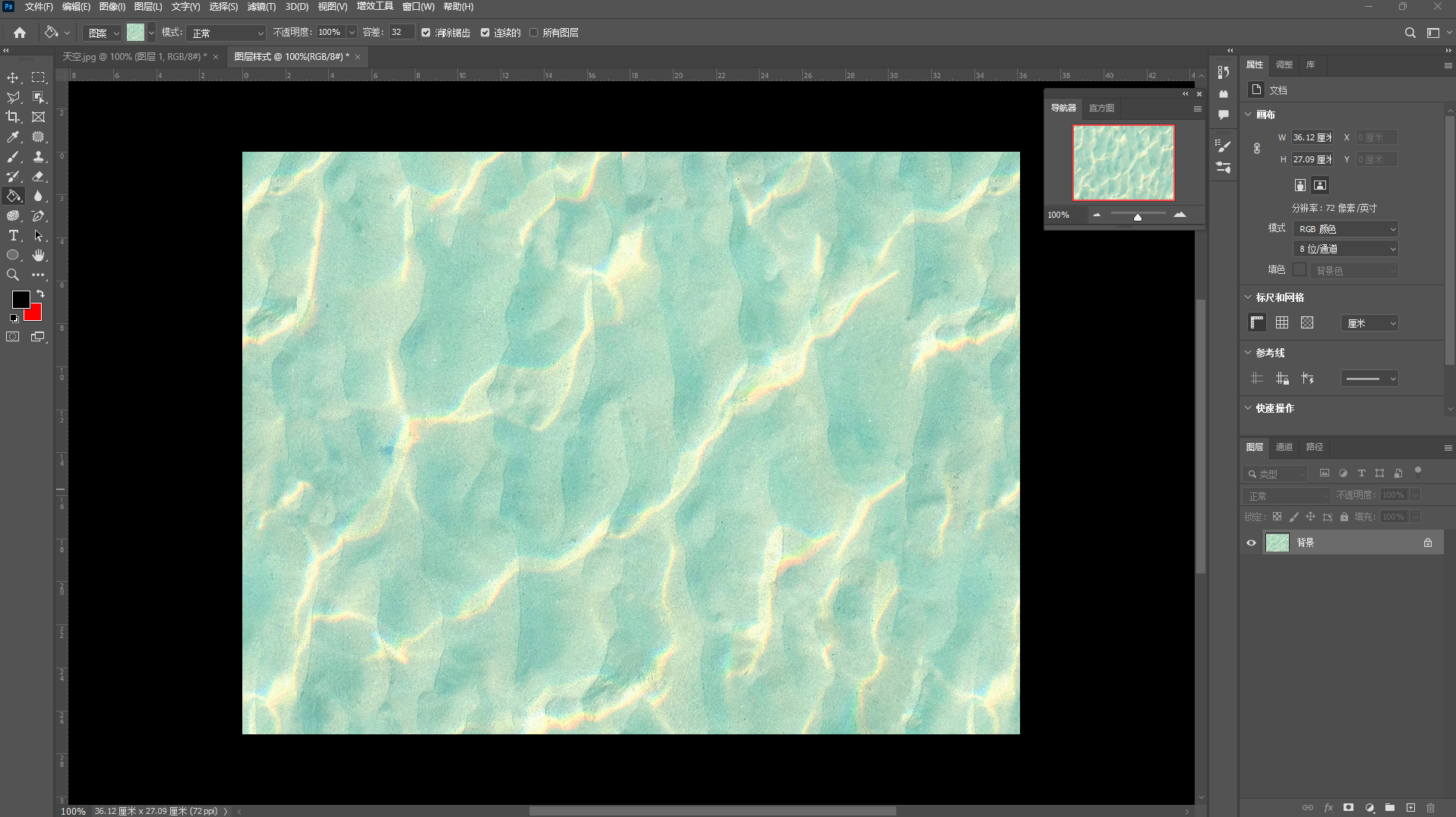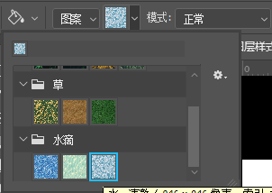 ,在工具属性栏中的"点击图案"找到"水源的第2个"图案