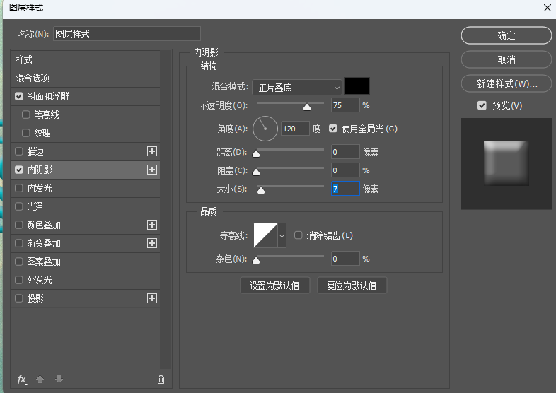 ③点击左侧"内阴影",按照下图调整参数。