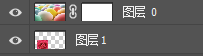 ②玫瑰花图层命名"图层1",鼠标移动到"图层1",鼠标右键点击"栅格化图层",拖到"图层0"下方,选择"图层0"为当前图层,单击图层调板下方的"添加图层蒙版",为"图层0"添加一个全白的图层蒙版,在图层蒙版缩览图上单击一下进入编辑状态