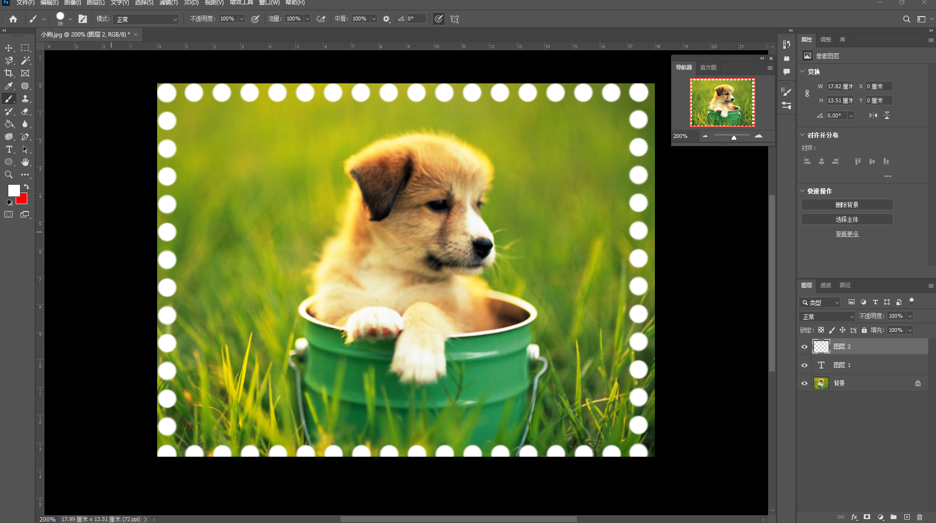 ①前景色设置"白色",选择"画笔"工具