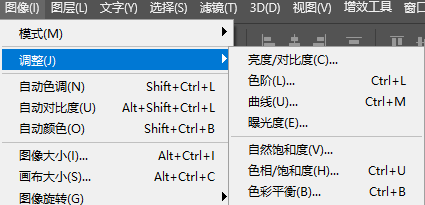 可使用"图像"→"调整"→分别点击前7个功能,根据自己喜好设置明亮度和质感。