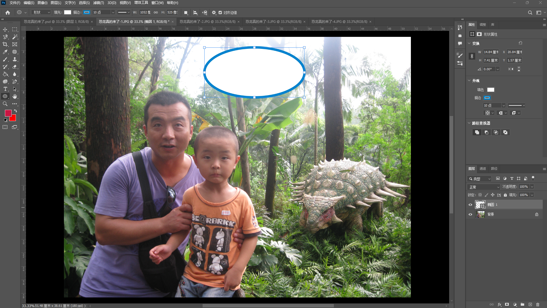 ①打开第一个素材照片文件,选择"椭圆工具"