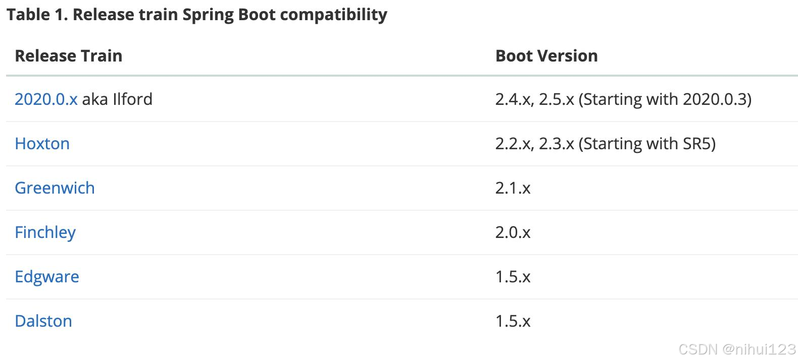 是英国伦敦地铁站的名字。官网还提供了Spring Cloud所依赖的Spring Boot的版本。