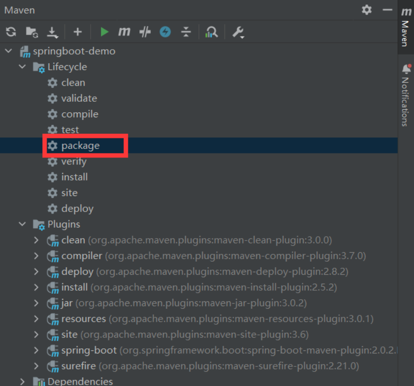 使用 maven 打包生成 jar 包(生成的 jar 包位于项目根路径下的 target 目录)