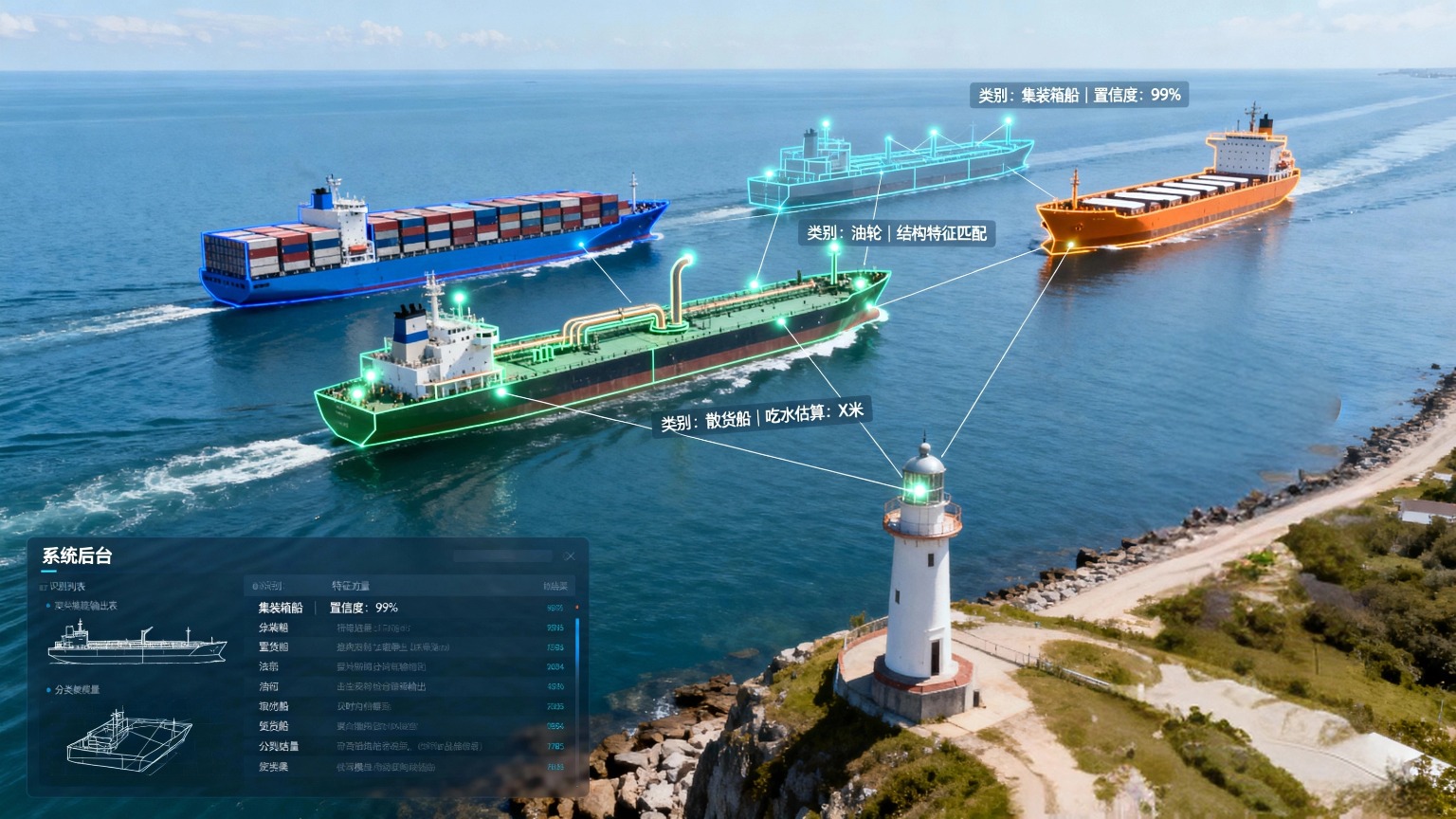 该AI解决方案的核心在于利用先进的图像处理与数据分析技术,通过对船舶图像的采集、预处理、特征提取以及分类识别等一系列步骤,实现对船舶种类的自动判断。在图像采集环节,需要部署高分辨率的摄像头或利用现有的船舶监控系统,获取船舶的外观图像。这些图像应涵盖船舶的多个角度,包括船头、船尾、船体侧面等关键部位,以便更全面地捕捉船舶的特征信息。