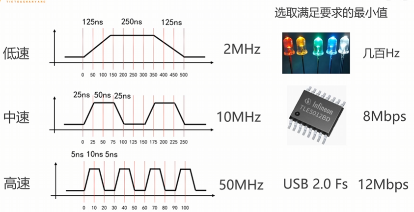 选取原则就是满足要求的最小值(速度越大,磨损也就越大、更占用带宽、芯片内部受电磁感应影响越深)