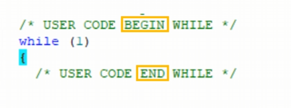 我们需要在"USER CODE BEGIN"和"USER CODE END"间填写代码,