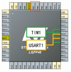 复用功能重映射:将冲突的复用功能移动到备用引脚上去