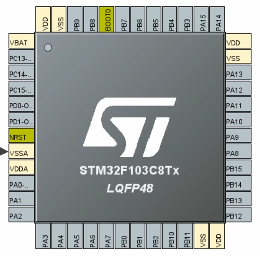 NRST是芯片的复位引脚(接一个按钮,按下去芯片复位),