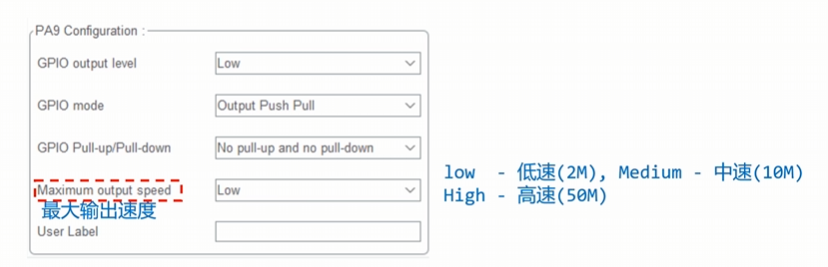 我们可以得出:上升/下降时间越短,IO的最大输出速度越大