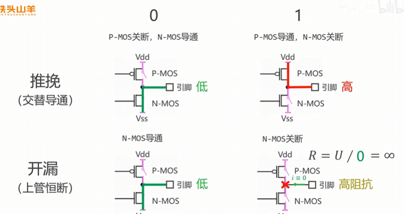 先看推挽与开漏,