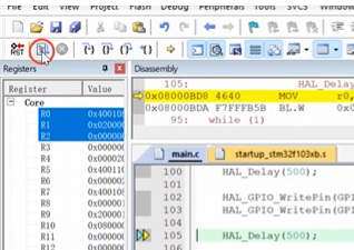 除了向单片机下载程序外,还可以用ST-link对代码进行调试
