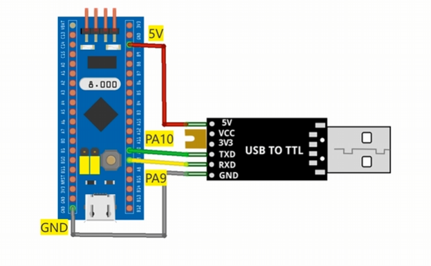 将USB转TTL(Transistor-Transistor Logic)模块接入开发板