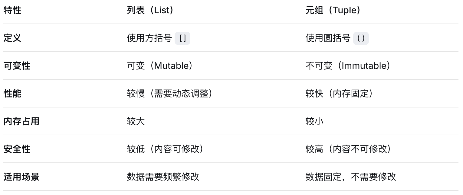 初学者不确定? → 先用列表,有需要再转为元组