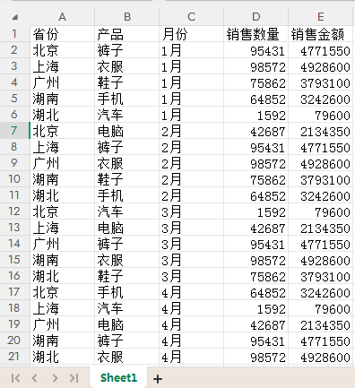var tit=["省份","产品","月份","销售数量","销售金额"];