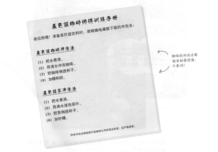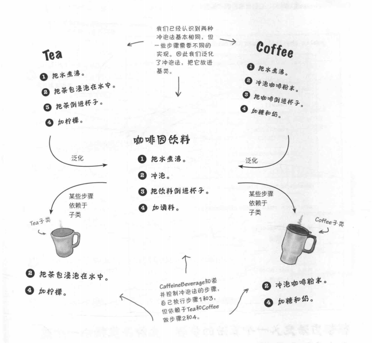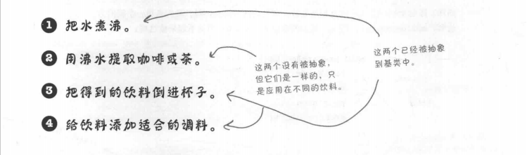 我们再看看咖啡和茶的冲泡法,发现两份冲泡法都遵循相同的算法: