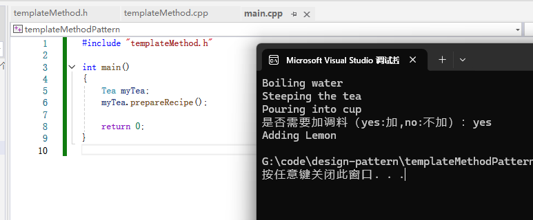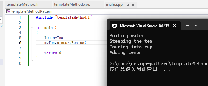 - 模版方法的抽象类可以定义具体方法、纯虚方法和钩子(虚方法)。