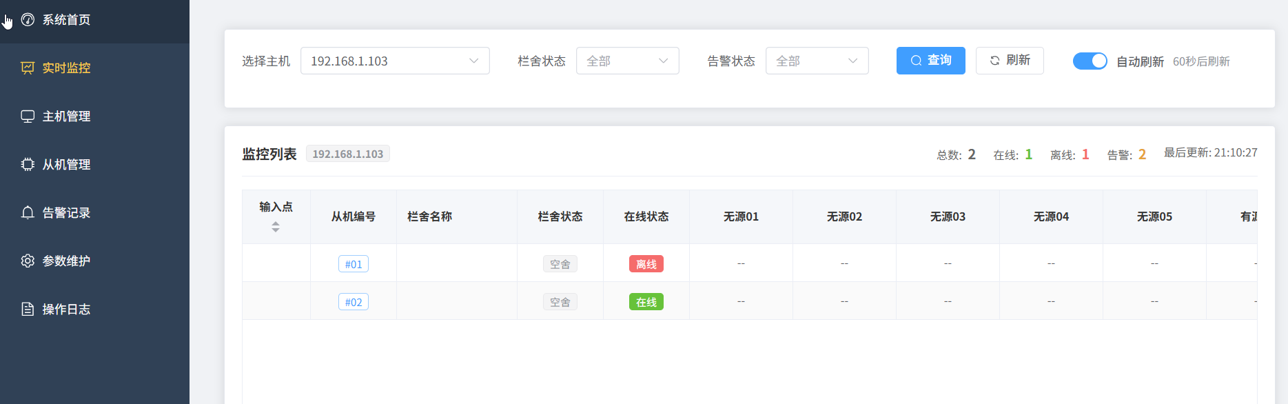 1、实时监控页面展示的是某台主机下所有从机的核心状态,包含但不限于: