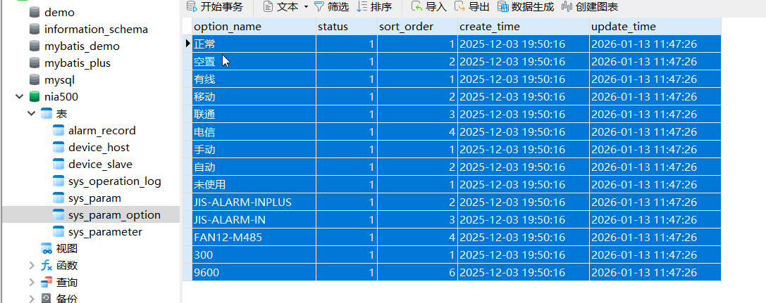 结合中央告警系统需求说明书的参数设计规范、从机数据特性(如猪舍状态、设备型号等),以及行业通用实践,将 "猪舍状态" 等设为 "参数选项名称"(如 "正常 / 空置")更合适,而非参数选项标号(如 "001/002")。