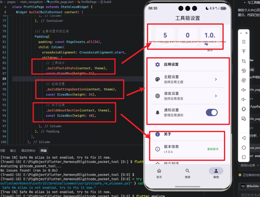 通过对 Flutter × OpenHarmony 个人中心页面主要设置内容区域的实现分析,可以看出,合理的页面结构设计对于跨端应用的可维护性与扩展性至关重要。借助 Flutter 声明式 UI 的优势,将工具统计、应用设置、关于应用等功能模块进行清晰拆分,不仅提升了代码可读性,也为后续功能迭代预留了充足空间。同时,这种以布局即架构的设计思路,使页面在 OpenHarmony 及其他平台上都能保持一致的交互体验,为构建稳定、可持续演进的跨端应用奠定了良好基础。