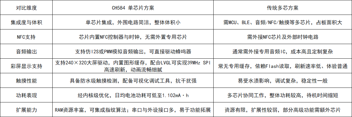 (4)段码LCD直驱支持:CH584芯片内置LCD驱动电路,可直接驱动最高112点(28×4)的段码式液晶屏,无需外置驱动芯片,有助于简化电路并降低整机功耗。