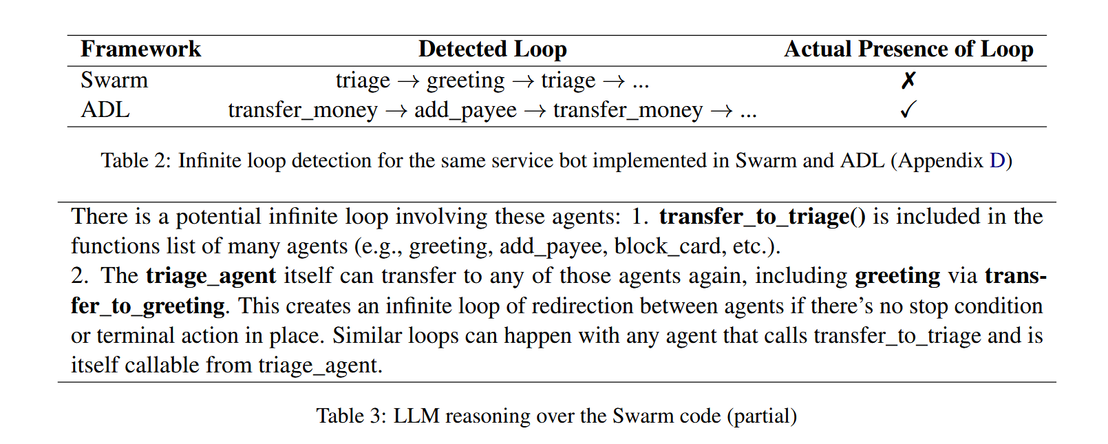 - 调试辅助 (Debugging Assistance): 由于 ADL 具有更清晰的语义,LLM 能够更准确地对 ADL 代码进行静态分析 。实验证明,在检测"死循环"漏洞时,LLM 对 ADL 代码的检测准确度显著高于包含 Python 逻辑的 Swarm 代码 。