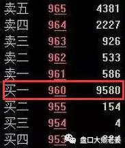 **盘口特征:**买盘买一以下全是大买单,但卖盘却只有卖一有较大卖单,其余卖档挂单较为正常,并且卖一大卖单吃掉后又反复出现。