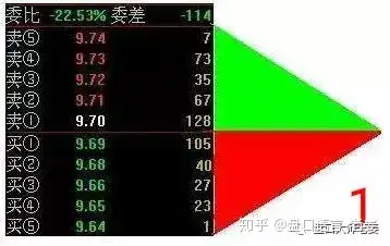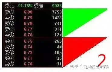 **特点:**委卖越往上越多,而委买越往下越多。
