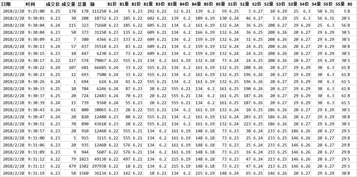 (一)五档分笔/分时成交数据: