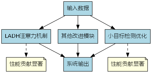 实验结果表明,各个改进模块都对最终性能有积极贡献,其中LADH注意力机制和小目标检测优化效果最为显著。💡