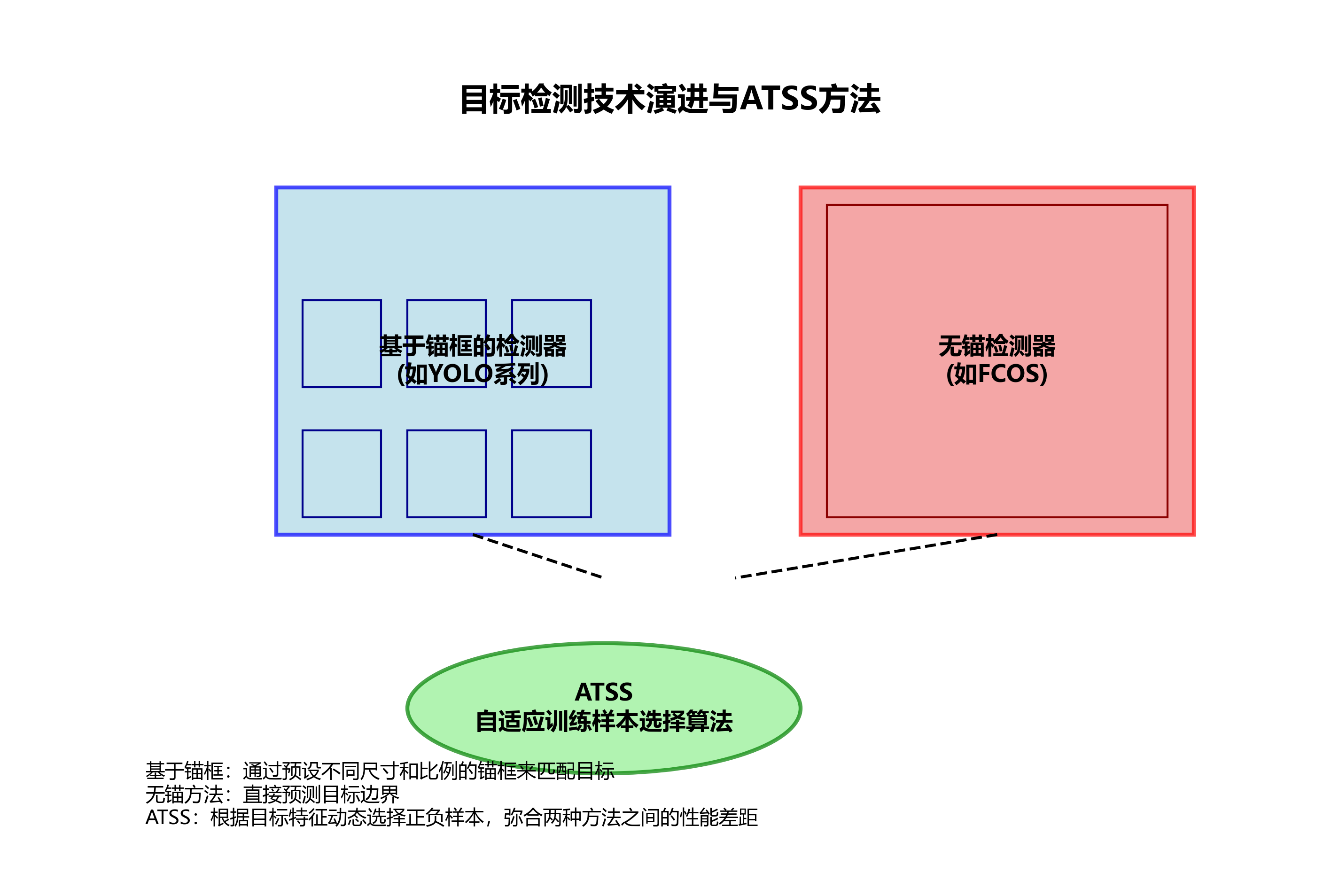 在目标检测技术演进过程中,基于锚框的检测器(如YOLO系列)和无锚检测器(如FCOS)各有优势。基于锚框的方法通过预设不同尺寸和比例的锚框来匹配目标,而无锚方法则直接预测目标边界。这两种方法在样本选择策略上的差异是性能差异的关键因素。本文提出的自适应训练样本选择算法(ATSS)能够根据目标特征动态选择正负样本,有效弥合了基于锚框和无锚方法之间的性能差距,为无人机与鸟类检测提供了新的技术思路。