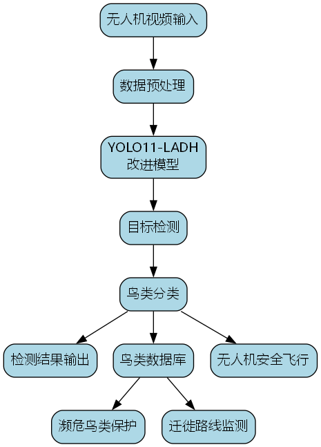 我们将改进后的YOLO11-LADH模型部署在一个实际的无人机鸟类监测系统中,该系统具有以下特点: