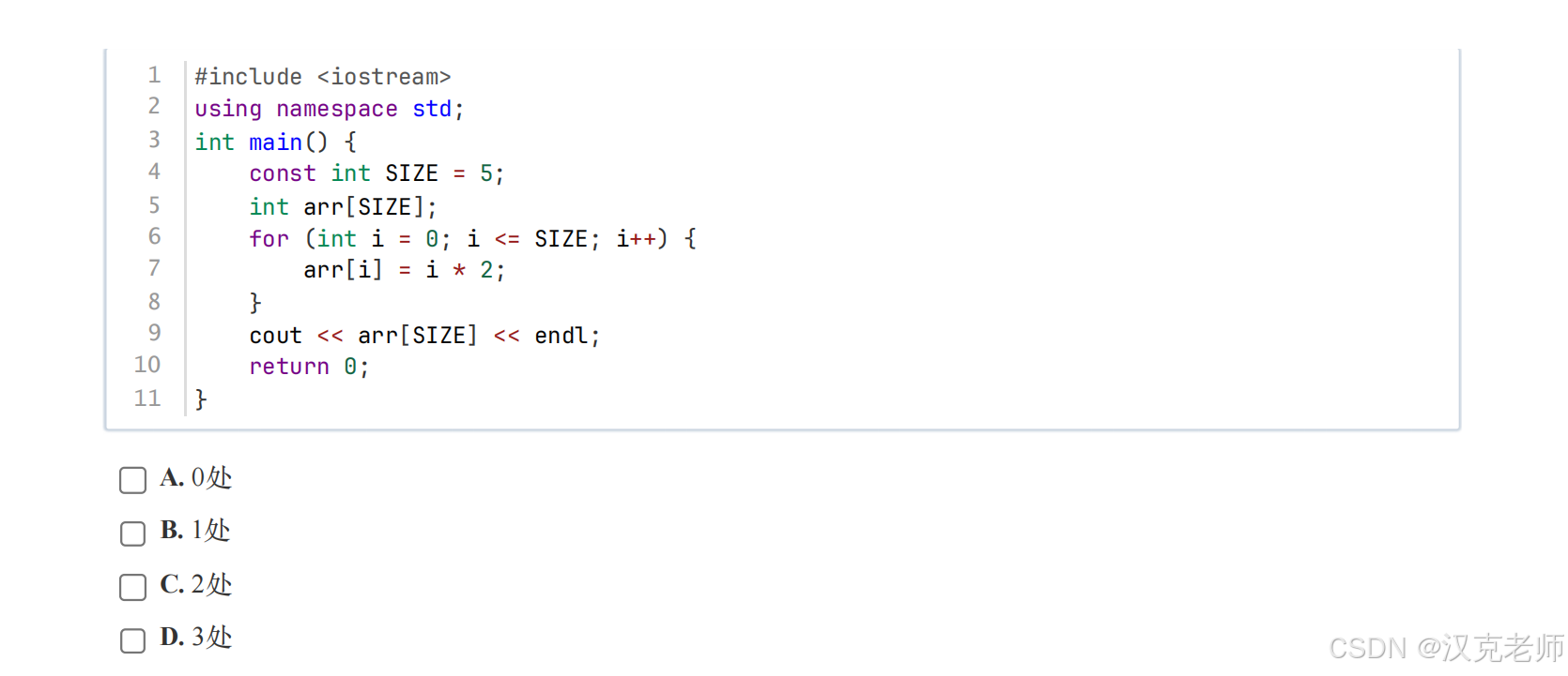 cout << arr[SIZE] << endl; //arr[SIZE], 数组越界了