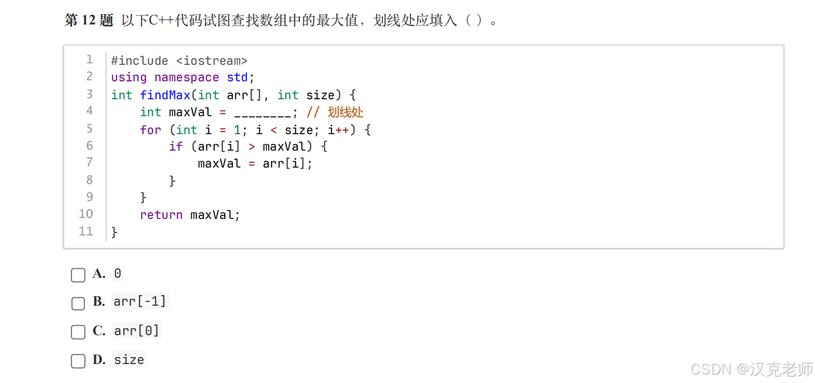✅ maxVal = arr[0] 才能枚举全部数组,把班级里所有小朋友都比较。