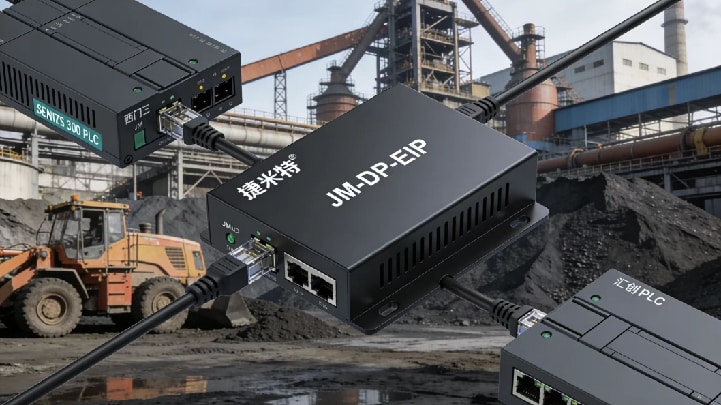 内蒙古包头某矿业集团 2024 年启动"智慧矿山+绿色冶金"升级改造,新建一条 320 t/h 的半自磨矿石输送线、一台 80 MVA 熔炼炉及一条 1 250 mm 热连轧生产线。原有西门子 S7-300 系统(CPU 315-2DP)承担皮带运输、称重计量、炉体冷却水阀组等控制,运行稳定;新增设备全部采用汇川 AC800 系列 PLC(EtherNet/IP 主站),以实现远程 I/O、伺服定位、能耗管理一体化。由于两种总线协议完全不同,必须在 30 天内完成"零停机"对接,保证井下供矿、冶炼节拍、轧钢订单三环节无缝衔接。最终用户选用捷米特 JM-DP-EIP工业级协议转换网关作为核心协议转换器,实现 Profibus DP 从站 ↔ EtherNet/IP 从站的双向实时数据映射。