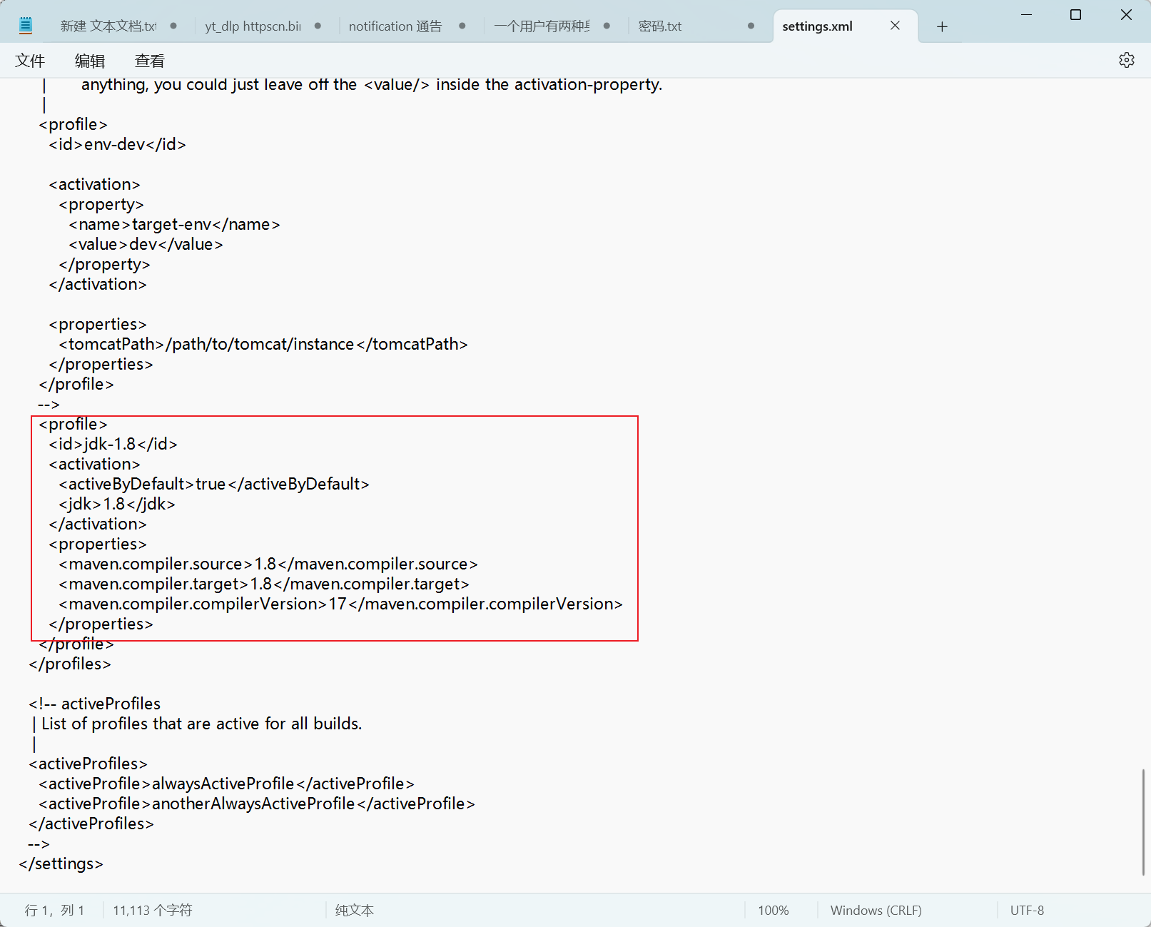 3.maven的setting.xml也手动的编辑相应的jdk版本