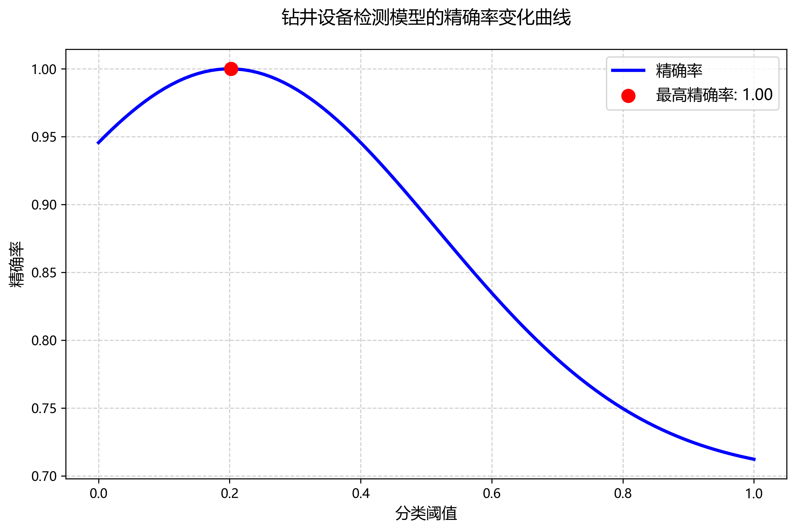 其中,TP表示真正例(True Positive),TN表示真负例(True Negative),FP表示假正例(False Positive),FN表示假负例(False Negative)。准确率是评估模型整体性能的基础指标,但在类别不平衡的情况下可能会产生误导。在钻井设备检测中,某些关键设备(如防喷器)样本较少,而普通设备样本较多,单纯依靠准确率无法全面反映模型性能。