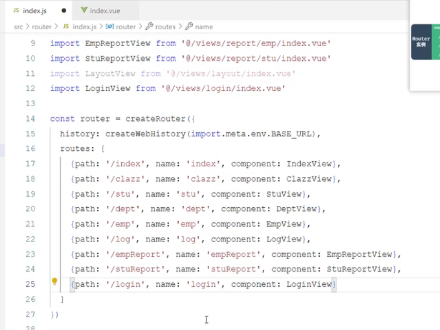 2.整体布局-动态菜单(VueRouter) router index